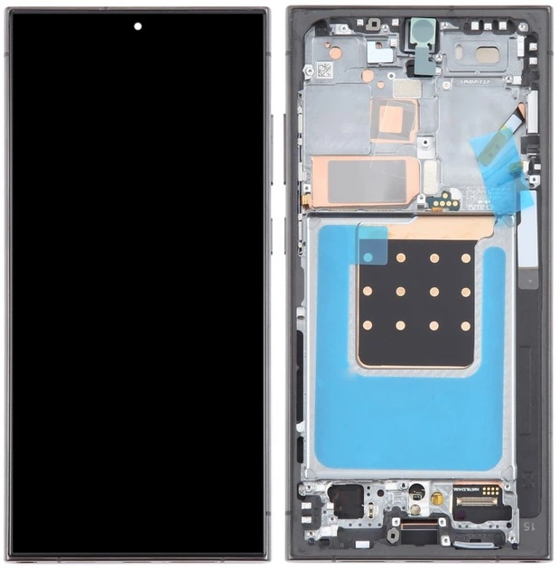 Дисплей модуль тачскрин Samsung S928 Galaxy S24 Ultra черный Amoled Original PRC Assembled с рамкой серого цвета Titanium Gr