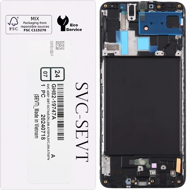 Дисплей Samsung A705 Galaxy A70 чорний, Amoled, , сервісне упакування, з рамкою, GH82-19747A