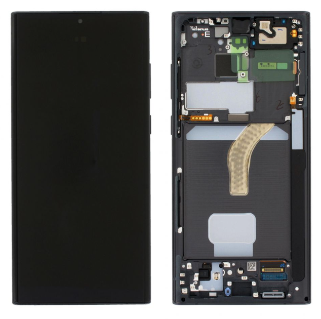 Дисплей Samsung сервісний S908 Galaxy S22 Ultra PHANTOM BLACK + рамка GH82-27488A
