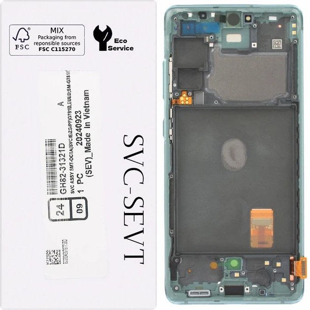 Дисплей Samsung G780 Galaxy S20 FE /G781 чорний, Amoled, , сервісне упакування, з рамкою зеленого кольору, Cloud Mint,