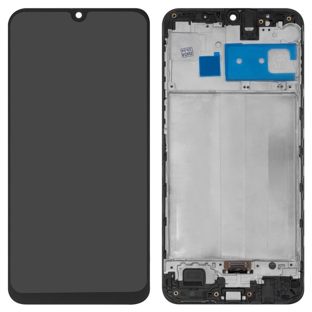 Дисплей для телефона Samsung M307 Galaxy M30s, з сенсорним склом, з середньою частиною корпуса, чорний, oled , original (prc