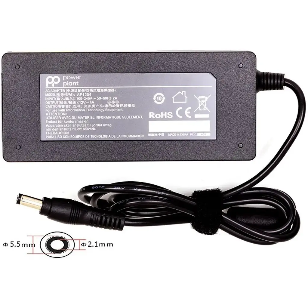 Універсальний блок живлення PowerPlant 220V, 12V 48W 4A (5.5*2.1)