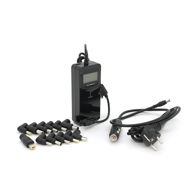 Універсальне АЗУ 90W, корпус - пластмаса, ручне регулювання, 8 роз'ємів, LCD - дисплей, BOX