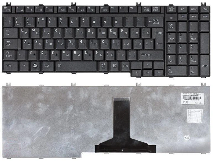 Клавіатура для ноутбука Toshiba Satellite (A500) Black, Mat, RU (вертикальний ентер)