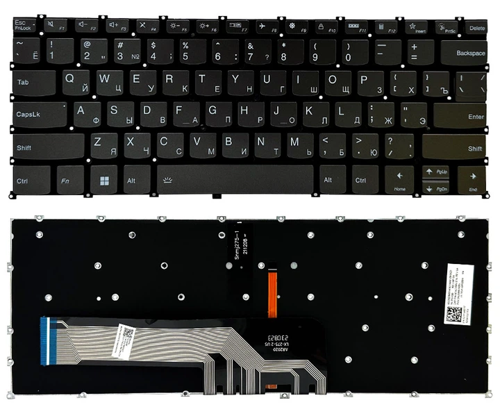 Клавіатура Lenovo IdeaPad 3-14ADA6 5-14ABA7 5 Pro-14ACN6 Flex 5-14ALC05 Yoga 7-14ITL5 графітова без рамки