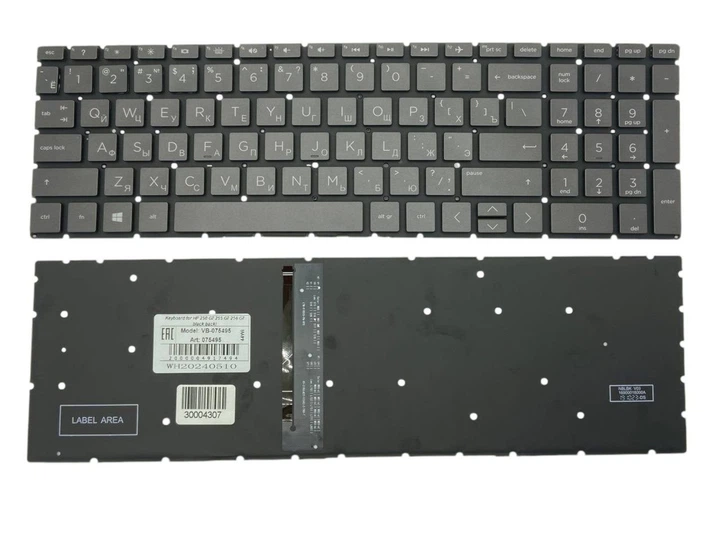 Клавіатура для ноутбука HP 250 G7 з підсвіткою (Light), чорна, (без рамки), rus розкладка