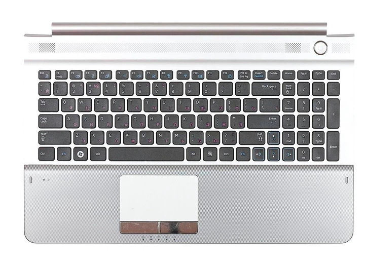 Клавіатура для ноутбука Samsung RC520 — чорна, з верхньою сріблястою панеллю (Silver TopCase), RU