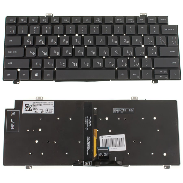 Клавіатура для ноутбука DELL Latitude: 5420, 7420, 7520 rus, чорна, без фрейма, підсвічування клавіш