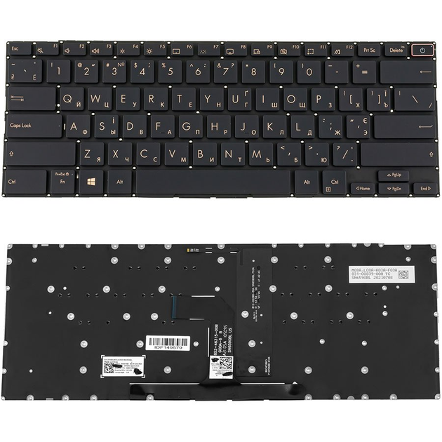 Клавіатура до ноутбуку ASUS (UX393 серій) українська розкладка, чорний колір, без фрейму, підсвітка клавіш (Оригінал)