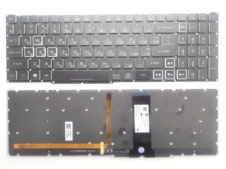 Клавіатура для ноутбуків Acer Nitro AN515-43 чорна без рамки кольорова підсвітка, біла облямівка UA/RU/US