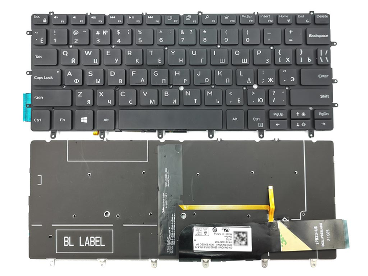 Клавіатура для DELL XPS 13 9370, 13 9380, 13-9370, 13-9380 (RU Black з підсвіткою) Оригінал