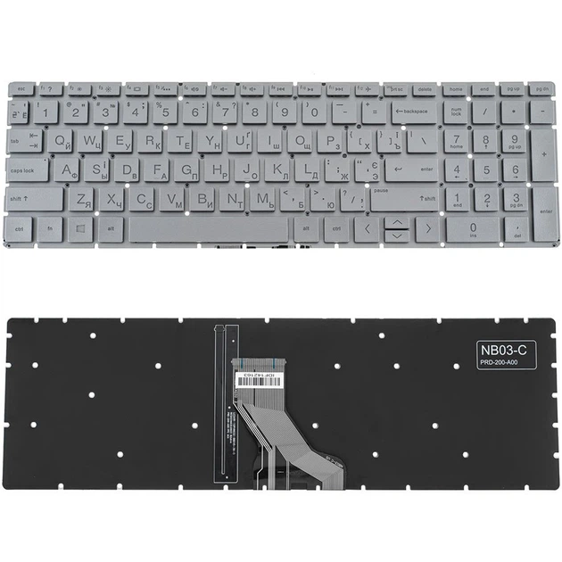Клавіатура до ноутбуку HP (250 G7, 255 G7 серій) українська розкладка, сріблястий колір, без фрейму, підсвітка клавіш