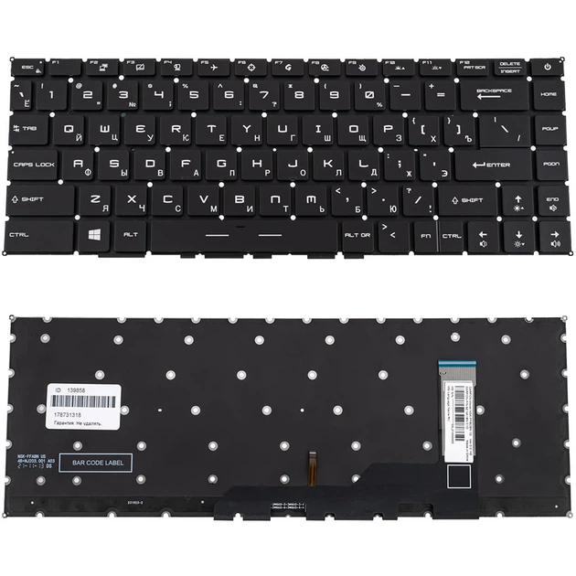 Клавіатура для ноутбука MSI (Modern 14 B) rus, black, без фрейму, підсвітка клавіш