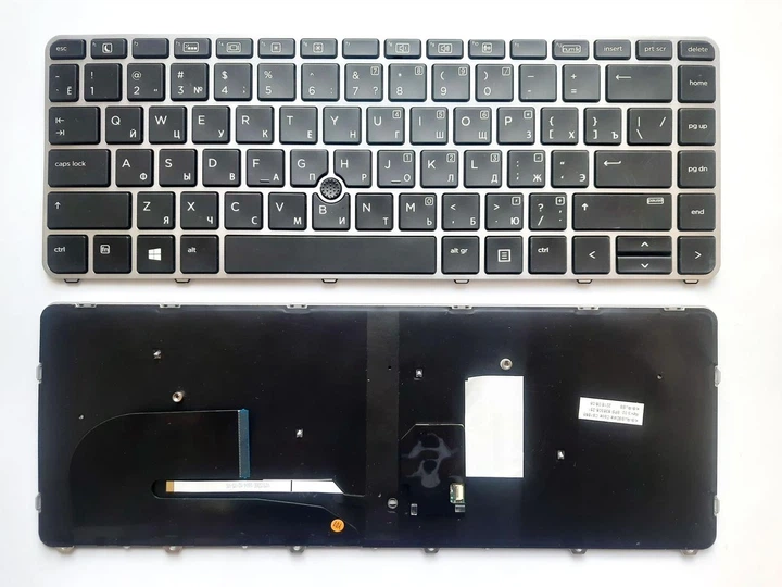Клавіатура для ноутбуків HP EliteBook 840 G3 чорна з сріблястою рамкою, з трекпоінтом, з підсвічуванням RU/US
