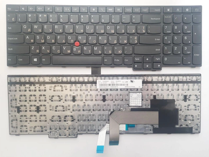 Клавіатура для ноутбуків Lenovo ThinkPad E550, E555, E560, E565 Series чорна, з трекпоінтом UA/RU/US