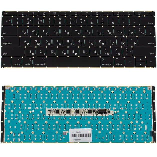 Клавіатура до ноутбуку APPLE (MacBook Pro Retina: A1534 (2015)) rus розкладка, чорний колір, маленький Enter, підсвітка клав