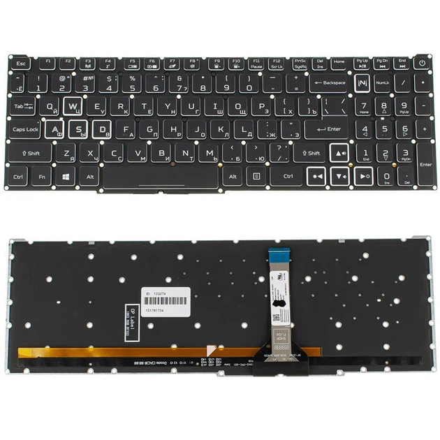 Клавіатура до ноутбуку ACER (Nitro: AN517-55) rus розкладка, чорний колір, без фрейму, підсвітка клавіш RGB (Оригінал)
