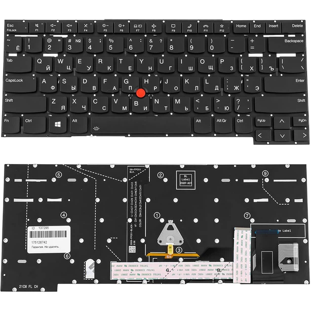 Клавіатура для ноутбука LENOVO (ThinkPad: X1 Carbon 11th Gen) rus, black, без фрейму, підсвічування клавіш