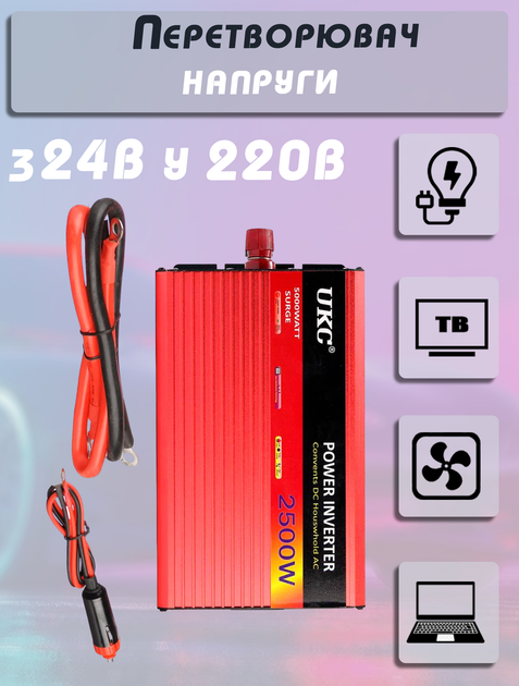 Перетворювач автомобільного струму UKC 24V-220V 2500W інвертор в машину з USB