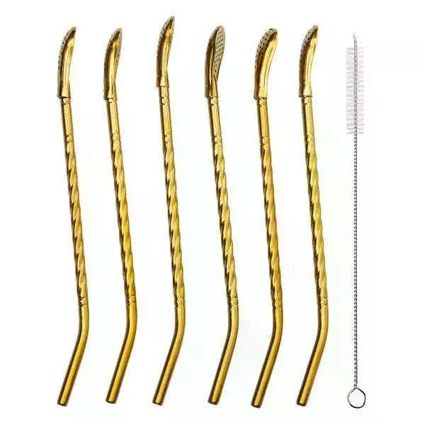 Набір з 6 бомбілій для мате багаторазових 19,5 см золотистий із нержавіючої сталі з щіточкою для чищення
