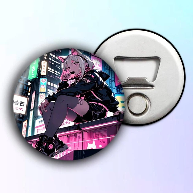 Відкривачка-магніт для пляшок Аніме Кіберпанк #0015 металевий 56 мм