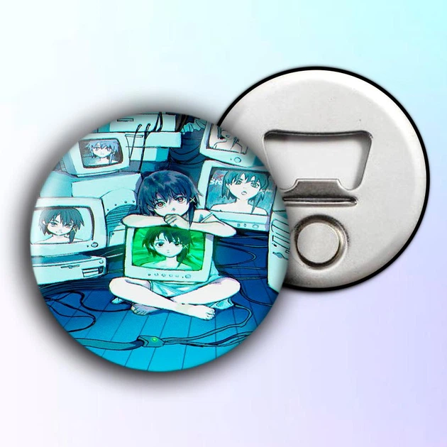 Відкривачка-магніт для пляшок Аніме Експерименти Лейн #0008 металевий 56 мм