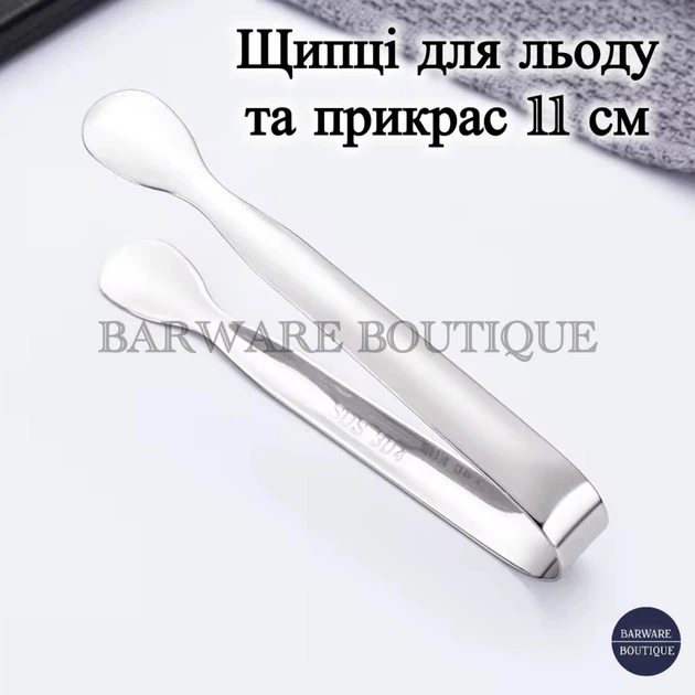 Міні щипці для льоду та прикрас 11 см з нержавіючої сталі Сріблясті | Барні щипчики для коктейлів і десертів
