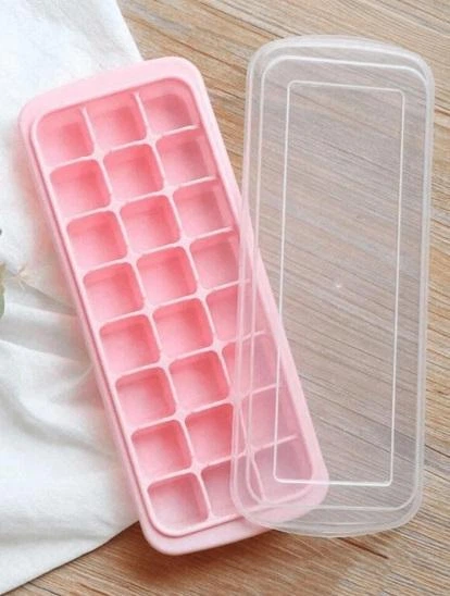 Силіконова форма для льоду з кришкою Vexal Кубики 24 комірки Рожевий (М1359)