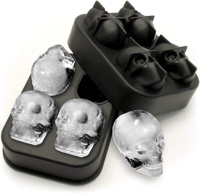 Форма для льоду силіконова Череп ICof 4 комірки чорна Лоток для фігурного льоду та солодощів (R051589)
