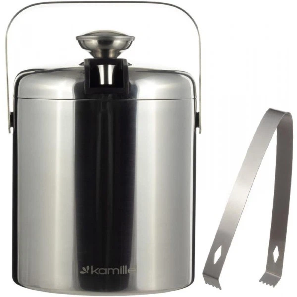 Відро для льоду Kamille 2000мл з нержавіючої сталі з подвійними стінками і кришкою (KM-4356)