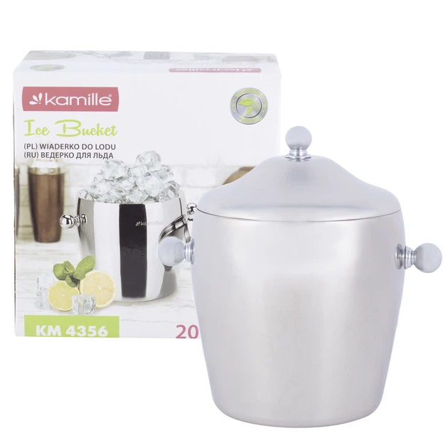 Міцне відро для льоду з кришкою 2 000 мл Kamille із нержавіючої сталі з двома ручками