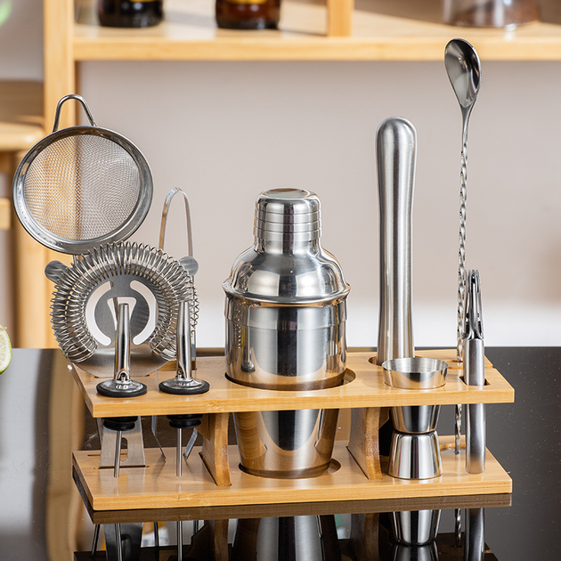 Набір бармена для приготування коктейлів Cobbler 750 мл з дерев'яною підставкою 12 в 1