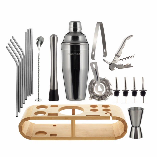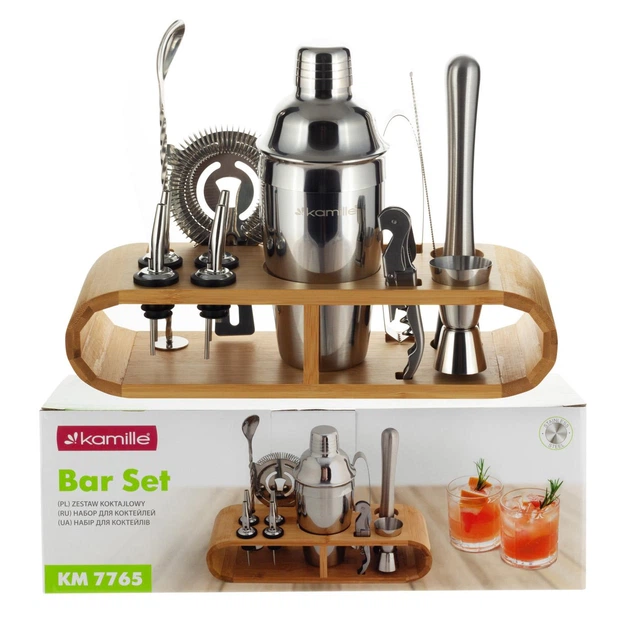 Професійний набір бармена (12 ел) Kamille з підставкою, барменський шейкер, набір для створення коктейлів