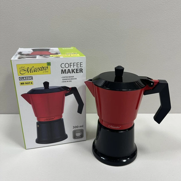 Гейзерна кавоварка алюмінієва 300 мл Maestro MR-1657-6 червона