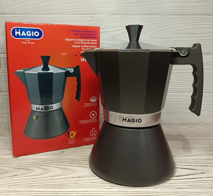 Гейзерна кавоварка Magio алюмінєва 300 мл 6 чашки, ручка з термостійкого пластику (58673)