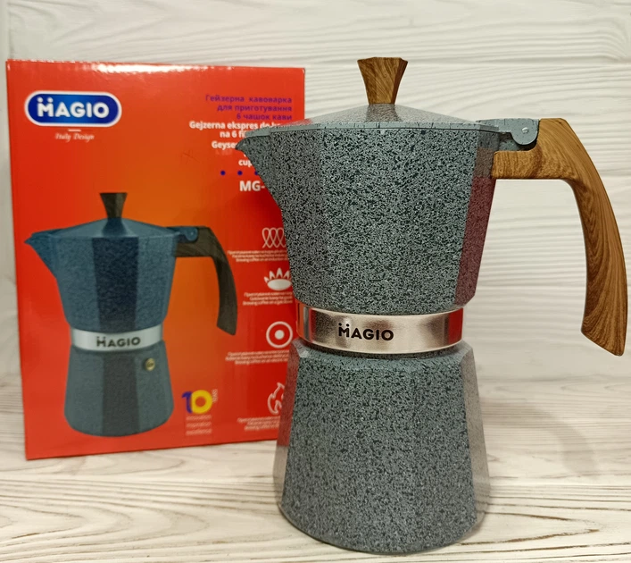 Гейзерна кавоварка Magio алюмінєва 300 мл 6 чашок, ручка з термостійкого пластику, індукція (58677)