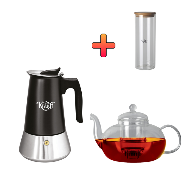 Гейзерна кавоварка Spritzer Krauff 300мл + Заварювальний чайник Eifer Krauff 1000мл + ПОДАРУНОК: Ємність для сипучих Grutze