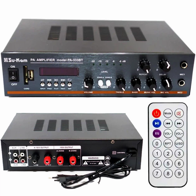 Двоканальний підсилювач звуку AMP 333 BT 2х100Вт з пультом дистанційного керування підтримкою Bluetooth