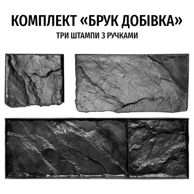 Комплект штампів для бетону і штукатурки Брук Добівка (3 елементи) BobrovArt Чорний Гнучкий Гумовий Трафарет Відтиск для Сті
