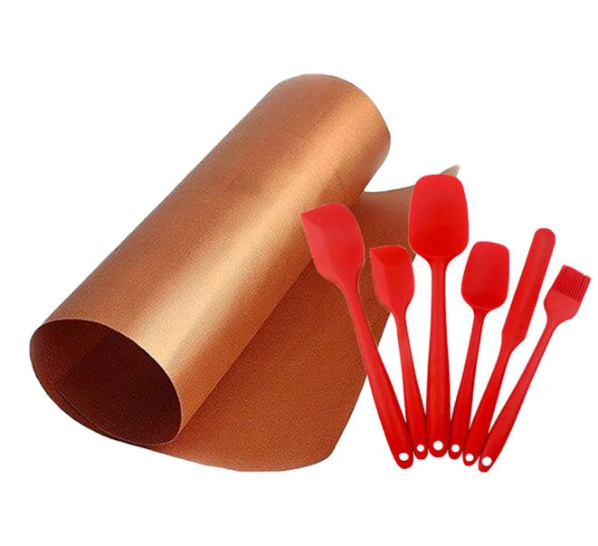 Набір кухонного приладдя 6 в 1 Червоний і антипригарний килимок для BBQ Бронзовий (vol-1232)
