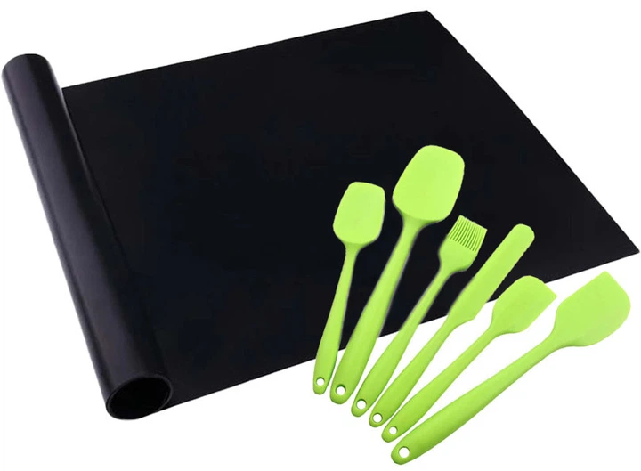 Набір кухонного приладдя 6 в 1 Салатовий і антипригарний килимок для BBQ Чорний (vol-1227)