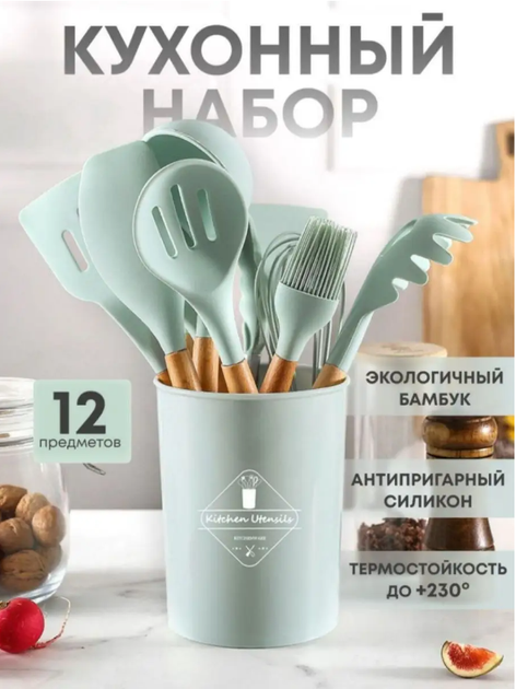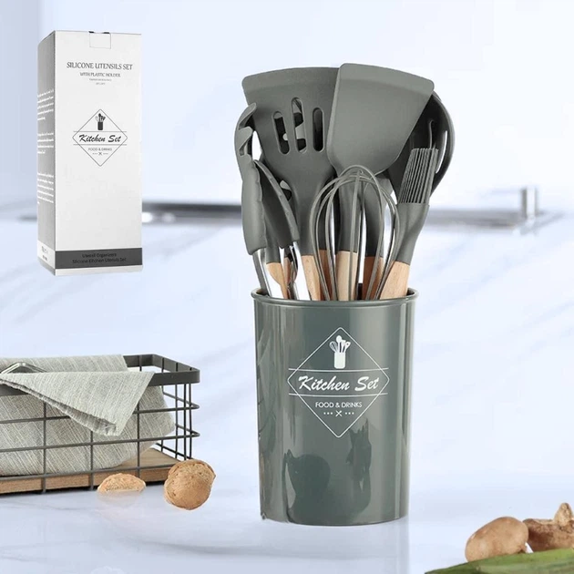 Силіконовий кухонний набір приладдя Kitchen Set 12 предметів з підставкою