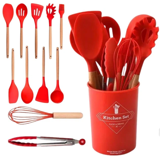 Набір кухонних предметів Kitchen Set 13 предметів Силікон Червоний