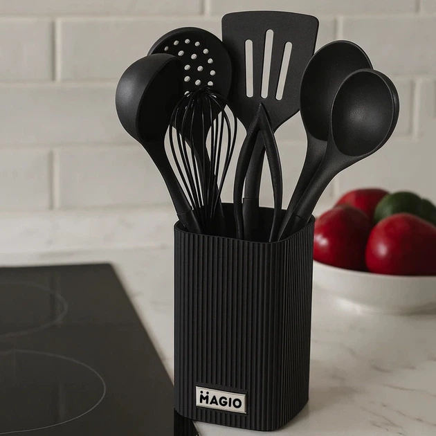 Набір кухонного приладдя GERMAN FAMILY Kitchen set, на підставці 12 предметів чорний