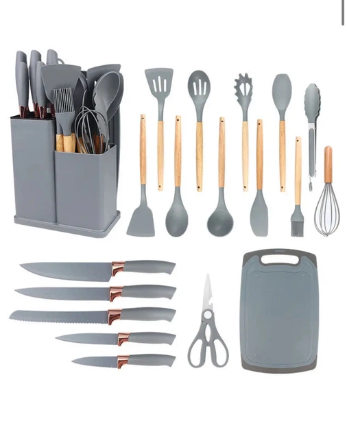 Набір кухонних приладдя із силікону, 19 предметів Kitchen Set, Сірий