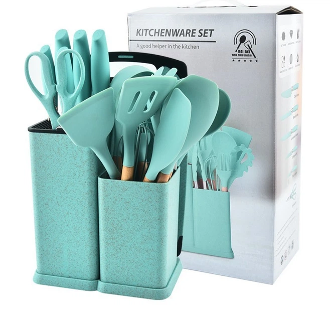 Набір кухонного приладдя на підставці з силікону, 19 предметів