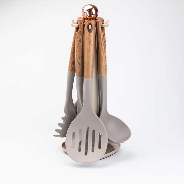 Набір кухонного приладдя 6 штук з ергономічними ручками для антипригарного посуду сірий