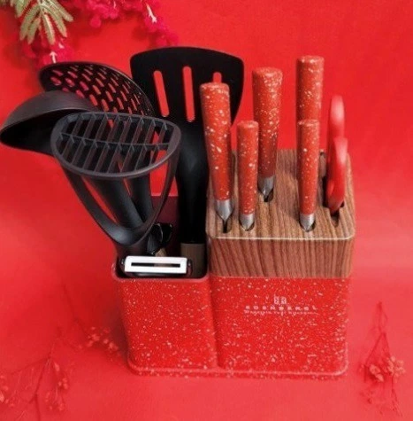 Набір кухонних ножів Edenberg EB-11098 з 12 предметів на стійці Червоний