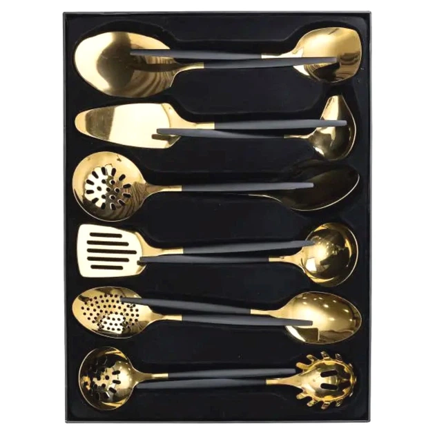 Набір кухонного приладдя 12 предметів золотисто-чорний з нержавіючої сталі для приготування їжі