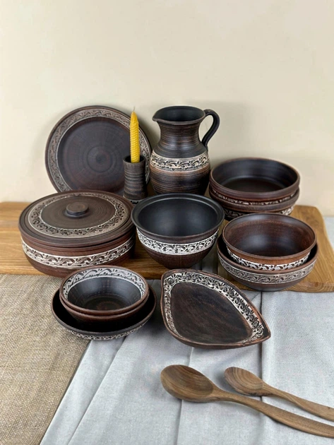 Набір глиняного (керамічного) посуду "Дванадцять страв" на 6 осіб Гражда Ангоб